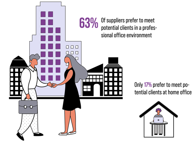There is much demand for professional services now, and COVID has impacted the workplace with the future of work changing rapidly. The human interaction element has been reduced from the equation, and customers have adapted to that. We can see that in 2016, meeting in a professional office was the primary way of meeting with suppliers. However, perception has shifted, and meeting in smaller areas outside of an office or even online has become a widely accepted way of conducting business in the future of work.